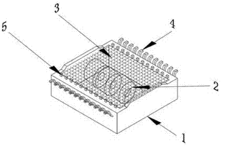 图1中,1、胶壳,2、变压器,3、灌封材料,4、外PIN脚,5、内PIN脚。