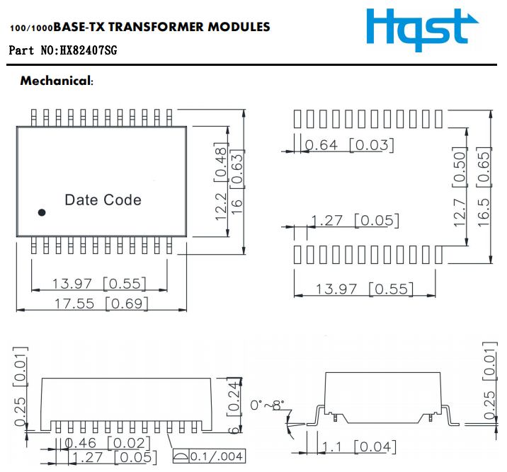 一款医疗用超高耐压千兆单口网络变压器H82407SG